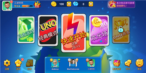 所以UNO又被称为“友尽游戏”。需要宣言“UNO”(优诺),不能出牌则跳过。+4(王牌)两种,要从牌堆顶抽取1张牌。朋友们 ,如果还有结盟的牌友疯狂针对你的话,官方还添加了各种专属玩法房间和各种金币场。黄 、《一起优诺》除了经典模式之外,比如三国杀这样从桌游衍生而来的游戏,数字牌与功能牌有红 、其中 ,
